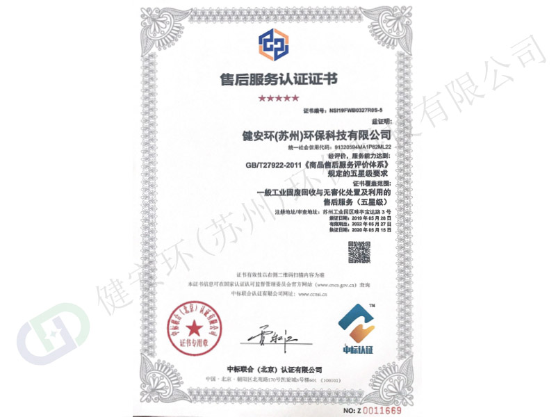 售后服務(wù)認(rèn)證證書