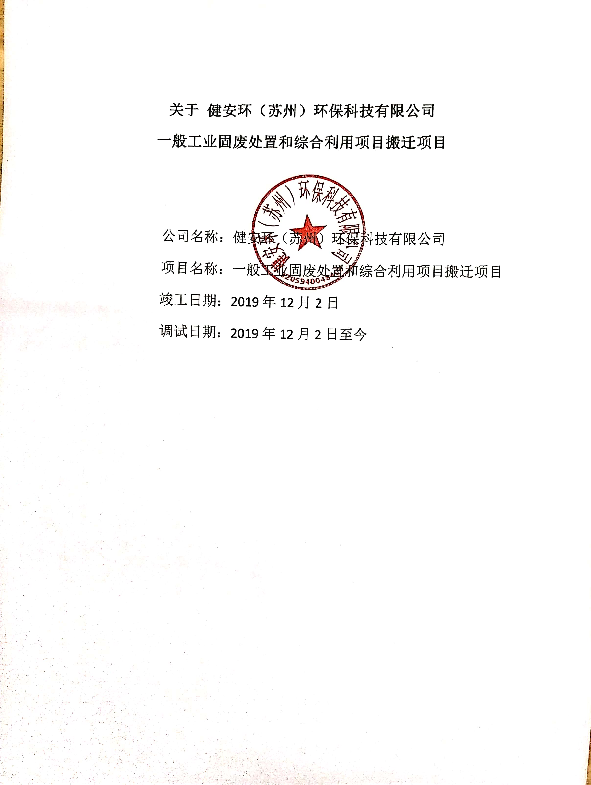 關(guān)于健安環(huán)(蘇州)環(huán)??萍加邢薰疽话愎I(yè)固廢處置和綜合利用項目搬遷項目